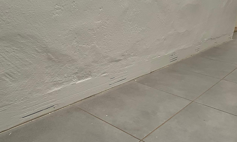 Usadenie vlastnými silami nie je prekážkou, pretože každý si poradí s lepidlom alebo iným systémom uchytenia a nie je nutné dopytovať sanačnú firmu. Ak však zvolíte vlastnú prácu alebo iného remeselníka, dbajte prosím na dodržanie správneho postupu. Táto lišta nesmie byť usadená tak, že sú otvory znečistené alebo zalepené, ako ukazuje táto fotografia, ktorá jasne demonštruje, ako to vykonávať nie je možné.