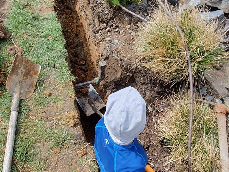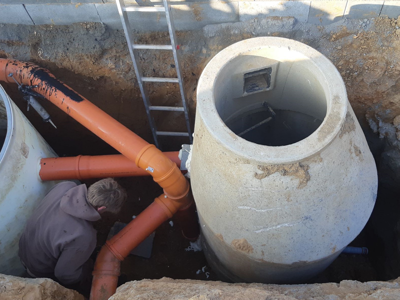 Prvým krokom sú vždy výkopové práce. Môžete zvoliť modernú techniku alebo klasickú ručnú prácu pomocou základných nástrojov. V každom prípade musí byť tento výkop v istom stanovenom spáde, aby voda mohla tento spád kopírovať a odtekať do zbernej jamy.