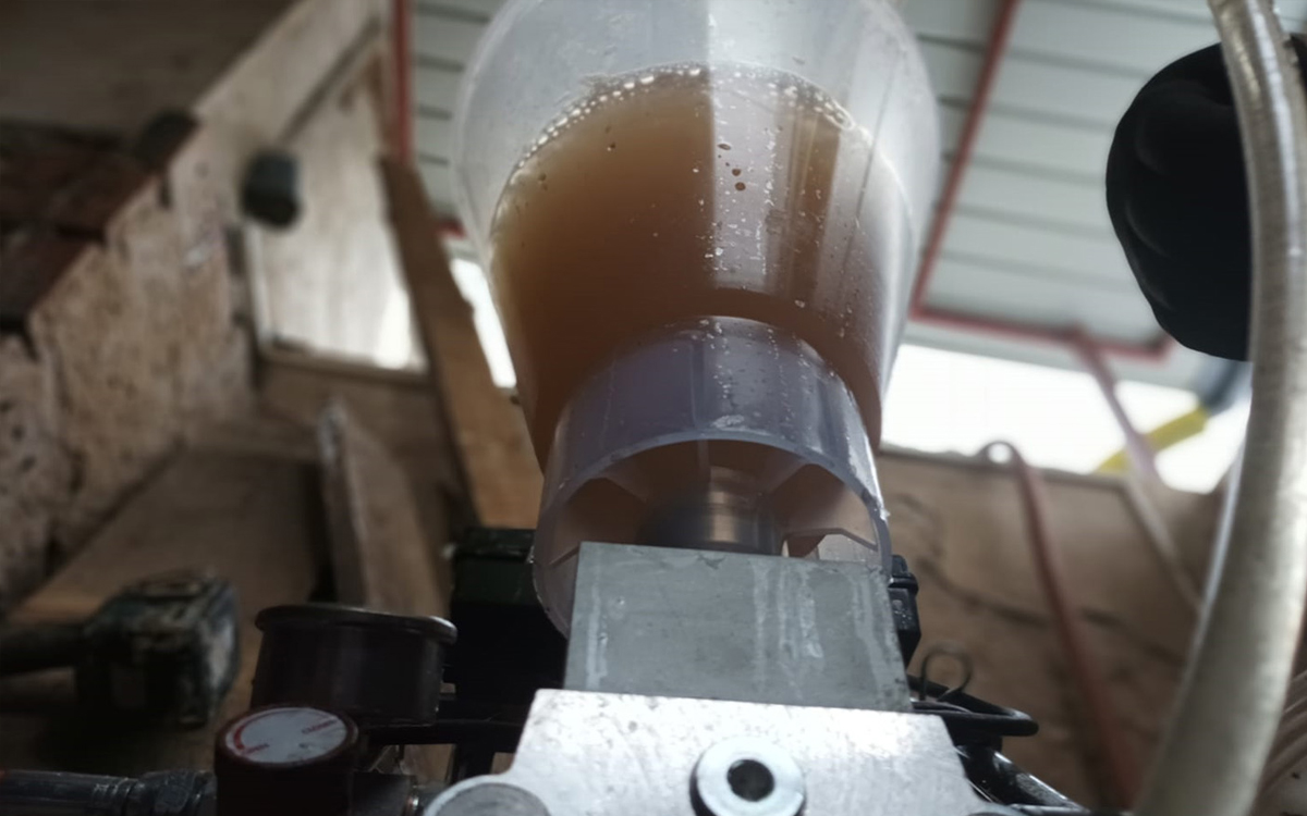 - Usadenie špeciálnych pakerov a príprava zmesi – Po zhotovení injektážnych otvorov sa inštalujú špeciálne pakery, ktoré umožnia priechod gélu do požadovaných miest aplikácie. Gél je nutné pripraviť s ohľadom na dobu gélovej reakcie tak, aby zreagoval až za stenou a neprenikol tam, kam nemá. Dôkladné premiešanie zmesi je zásadné. Pri príprave je nutné sledovať podmienky na mieste, najmä teplotu vody a okolia.